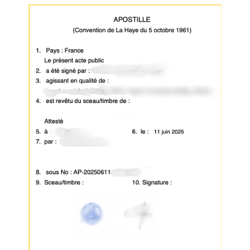 ✅ Frais d'apostille officiels inclus dans le prix (aucun supplément)